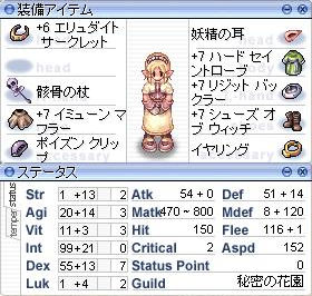 今回もDexを+2 Vitを+2とあげて、詠唱時間が短くなっていい感じです。