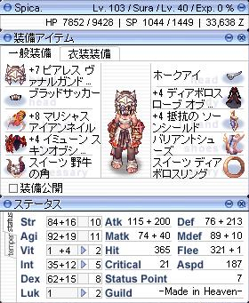 狩場を広げるにはVITをもっとガンガン上げたいですし、AGIも108まで上げたいなぁ…とかINTももうちょっととか目標は遠いですけど、フェイヨンD5階に通ってるだけなら今のステでもなんとかなります。